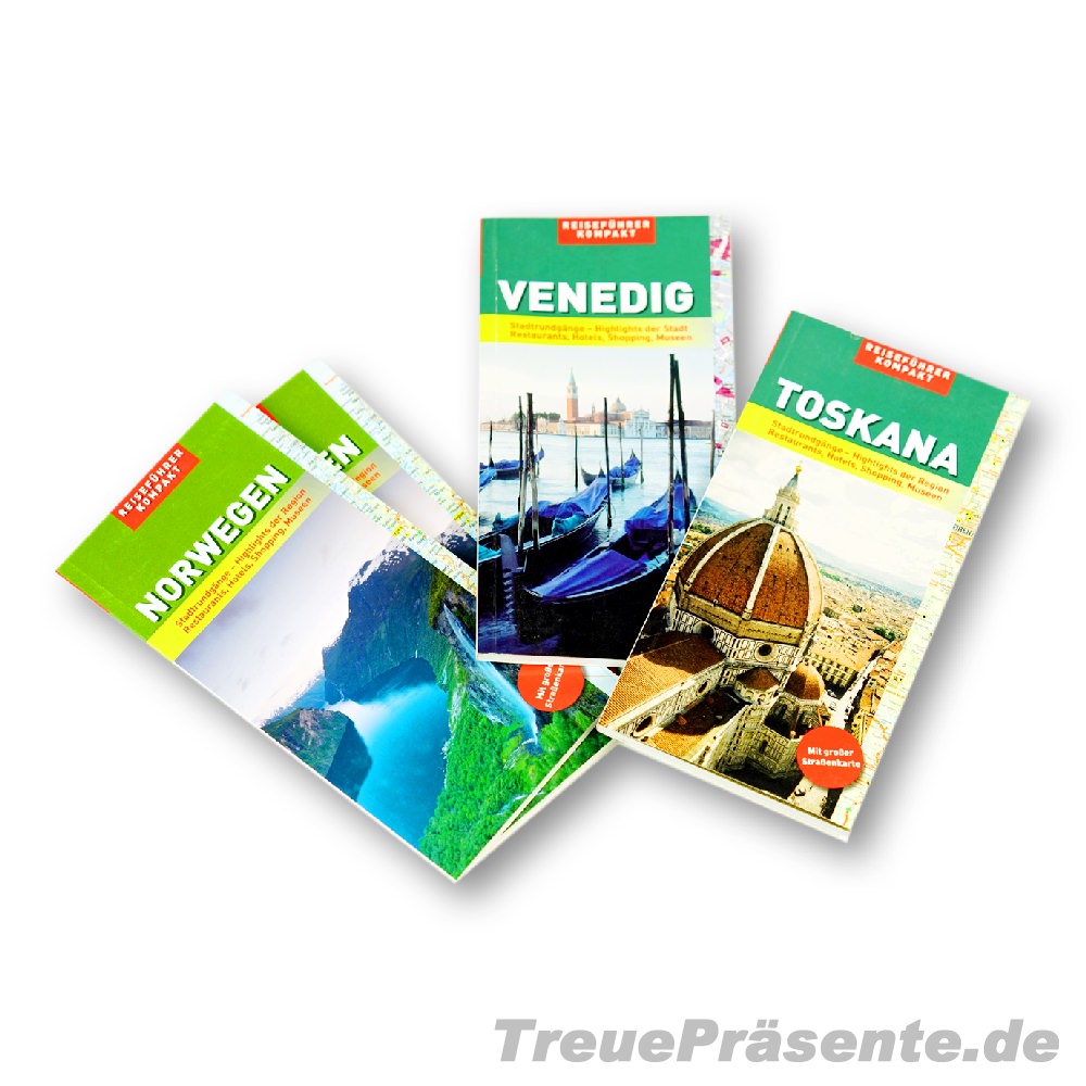 Reiseführer Kompakt mit Straßenkarte, Stadtplan, sortiert, z. B. Norwegen, Toskana, Bodensee,