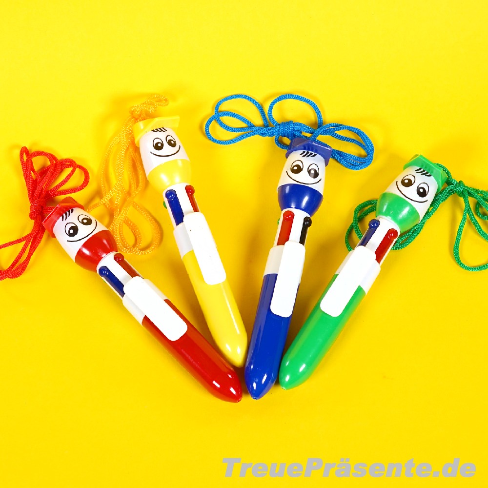 Vierfarb-Kugelschreiber zum Umhängen mit Kappe & Gesicht