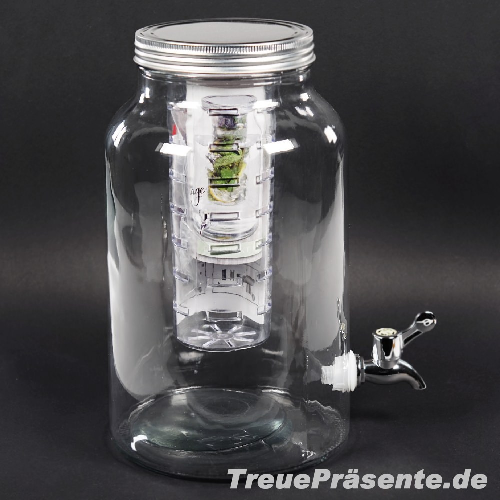 Getränkespender aus Glas, ca. 4 Liter, inkl. Kunststoff-Einsatz für Kräuter oder Zitrone und Zapfhahn