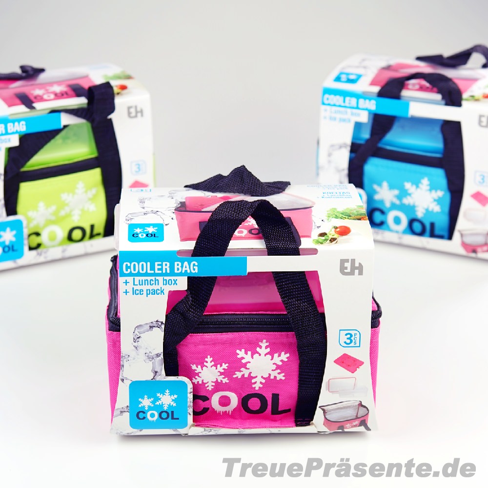 Lunchbox-Kühltasche mit Kühlelement, farblich sortiert