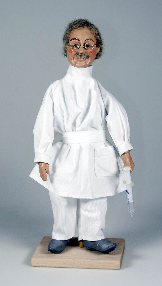 Dekofigur Arzt, Handarbeit mit vielen liebevollen Details, Charakterkopf aus Keramik-Gießmasse, Kleidung maßgeschneidert, H: ca. 41 cm, optional mit individuellem Gravurschild