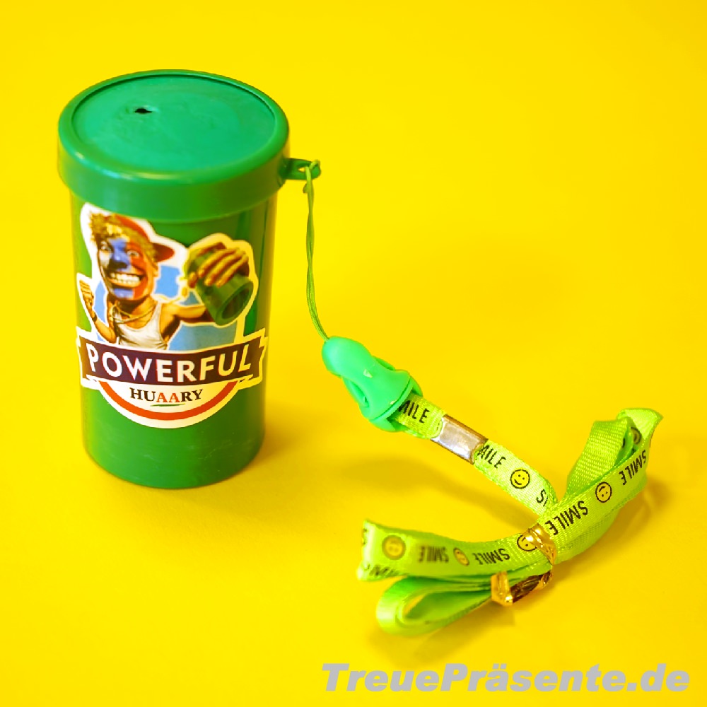 Blashorn 7 cm mit Lachgesicht-Umhängeband, farblic