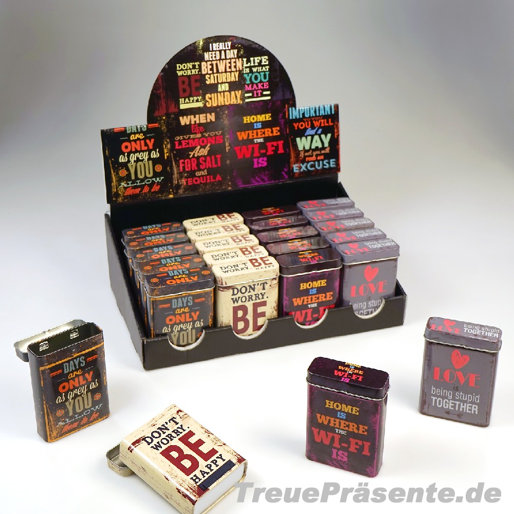 Zigarettenbox aus Metall, ca. 9,4 x 7 x 2,7 cm, Dekor sortiert, in Display