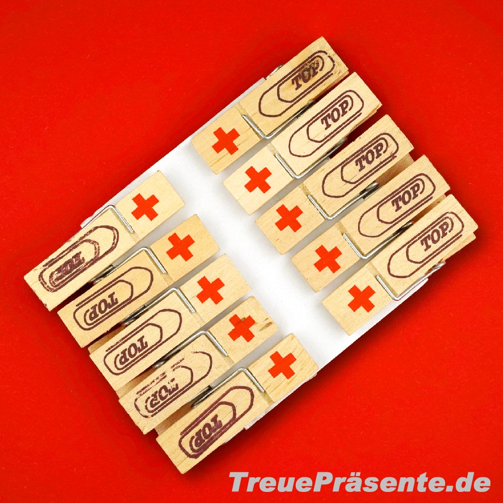 Holzklammer "TOP" 4,8 mm, naturfarben, inkl. Druck Rotes Kreuz
