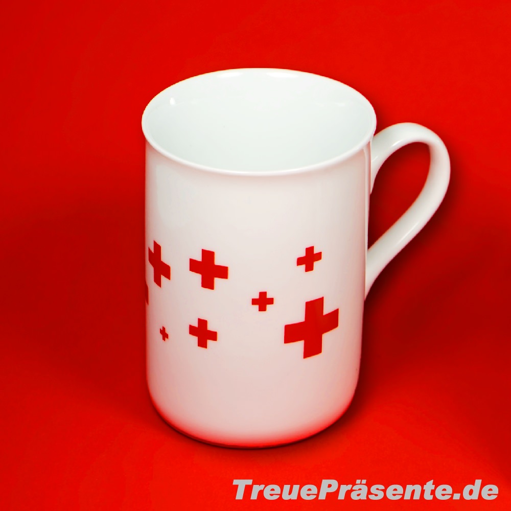 Porzellan-Tasse weiß, Rundumdruck Rote Kreuze, 0,25 l