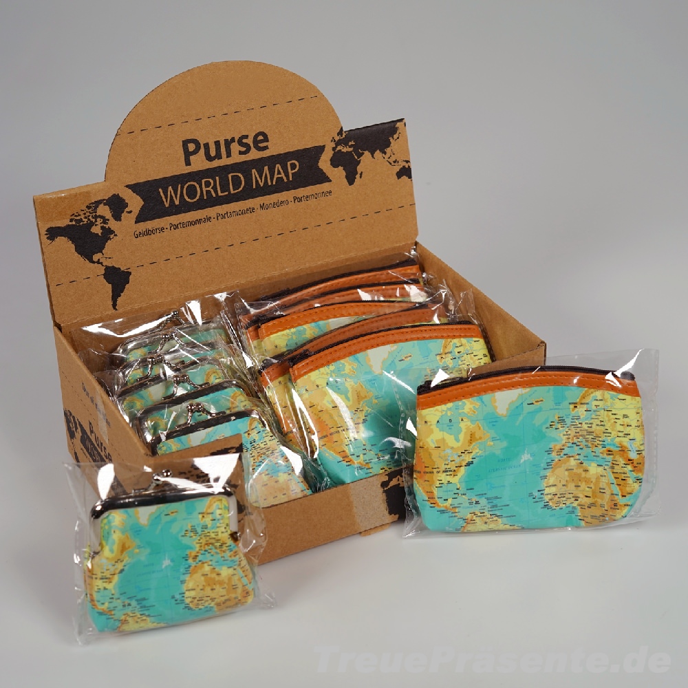 Geldbörse Weltkarte ca. 9 x 8 und 13 x 9 cm, zweifach sortiert im Display