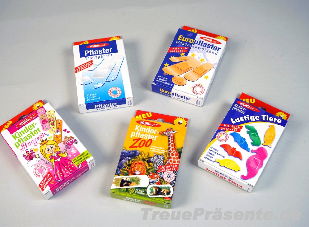 Wundpflaster-Sets im Display, Ausführungen und Designs sortiert