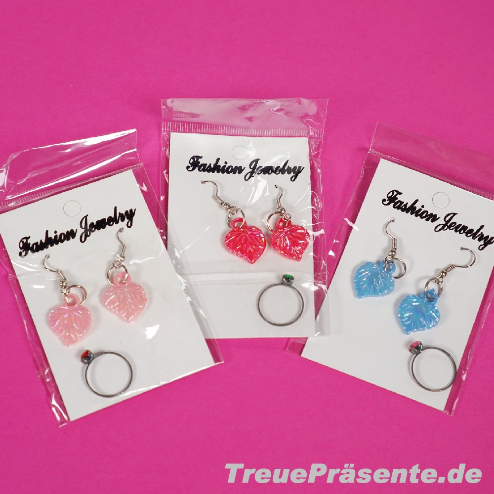 Sie sind hier: Werbemittel123.de » Kundengeschenke » Spielwaren Schmuckset Ohrringe und Ring, farblich sortiert Schmuckset Ohrringe und Ring, farblich sortiert