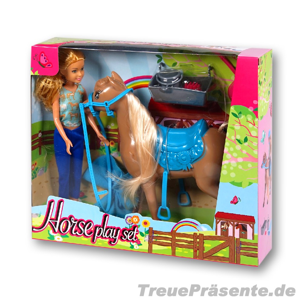 Spielset Puppe mit Pferd inkl. Zubehör, ca. 28 x 23 cm