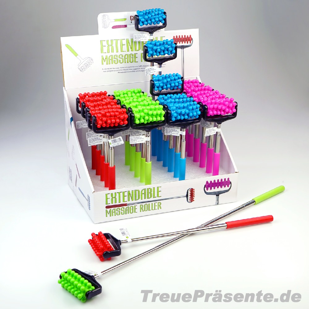Ausziehbarer Massage-Roller mit gummiertem Griff, ca. 51 cm, farblich sortiert im Display