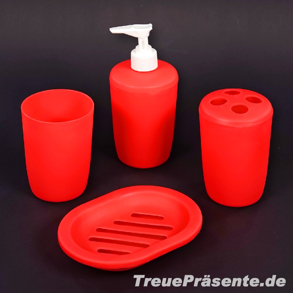 Badezimmer-Set, 4-teilig, inkl. Seifenspender, Seifenschale, Zahnputzbecher und Zahnbürstenhalter, farblich sortiert