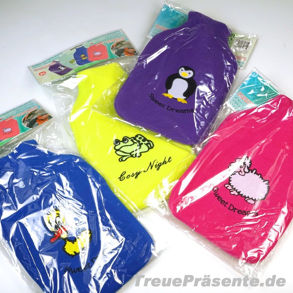 Wärmflasche Gummi 2 l, mit Fleecebezug, Designs so