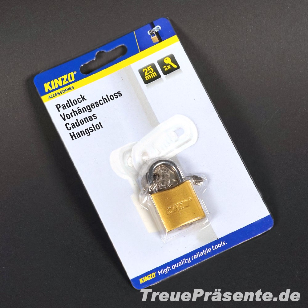 Vorhängeschloss ca. 4 x 2,5 cm auf Karte mit drei Schlüsseln