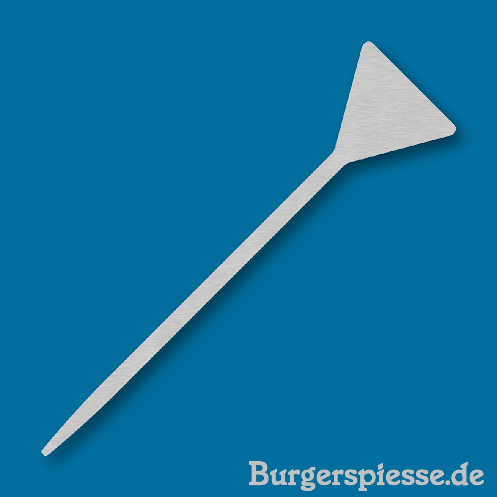 Hamburger- / Burgerspieß 103 Dreieck, ca. 155 x 38 x 1,5 mm, inklusive Logogravur (einseitig)