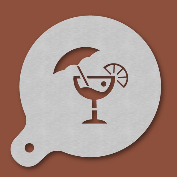Cappuccino-Schablone Cocktail, Außendurchmesser 120 mm, Motivdurchmesser ca. 70 mm, aus Edelstahl mit Handgriff und integriertem Aufhänger, spülmaschinengeeignet, Lieferung in Verkaufsverpackung mit Kartoneinlage und Bedienungsanleitung