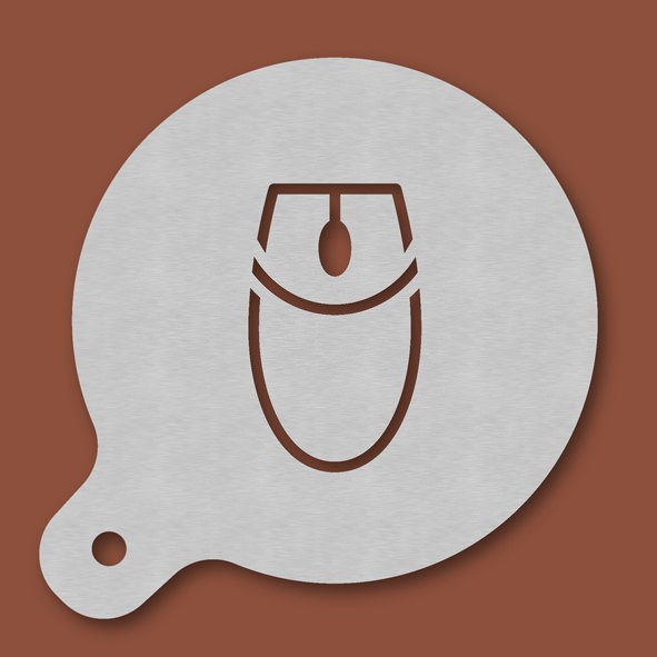 Cappuccino-Schablone Computer-Maus, Außendurchmesser 120 mm, Motivdurchmesser ca. 70 mm, aus Edelstahl mit Handgriff und integriertem Aufhänger, spülmaschinengeeignet, Lieferung in Verkaufsverpackung mit Kartoneinlage und Bedienungsanleitung