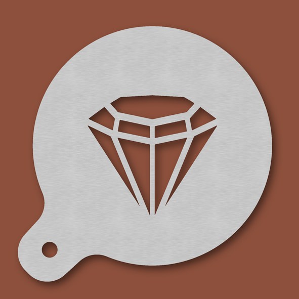 Cappuccino-Schablone Diamant, Außendurchmesser 120 mm, Motivdurchmesser ca. 70 mm, aus Edelstahl mit Handgriff und integriertem Aufhänger, spülmaschinengeeignet, Lieferung in Verkaufsverpackung mit Kartoneinlage und Bedienungsanleitung