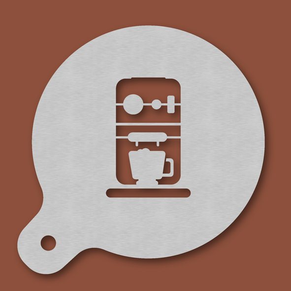 Cappuccino-Schablone Espressomaschine, Außendurchmesser 120 mm, Motivdurchmesser ca. 70 mm, aus Edelstahl mit Handgriff und integriertem Aufhänger, spülmaschinengeeignet, Lieferung in Verkaufsverpackung mit Kartoneinlage und Bedienungsanleitung