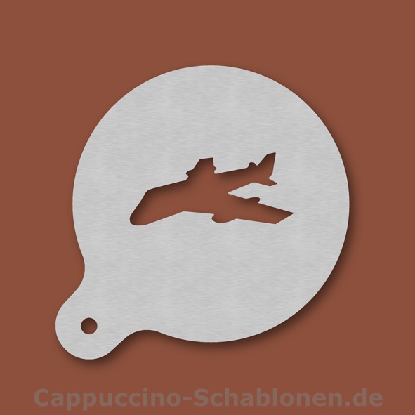 Cappuccino-Schablone Flugzeug, Außendurchmesser 100 mm, Motivdurchmesser ca. 60 mm, aus Edelstahl mit Handgriff und integriertem Aufhänger, spülmaschinengeeignet, Lieferung in Verkaufsverpackung mit Kartoneinlage und Bedienungsanleitung