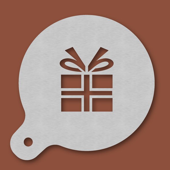 Cappuccino-Schablone Geschenk, Außendurchmesser 120 mm, Motivdurchmesser ca. 70 mm, aus Edelstahl mit Handgriff und integriertem Aufhänger, spülmaschinengeeignet, Lieferung in Verkaufsverpackung mit Kartoneinlage und Bedienungsanleitung