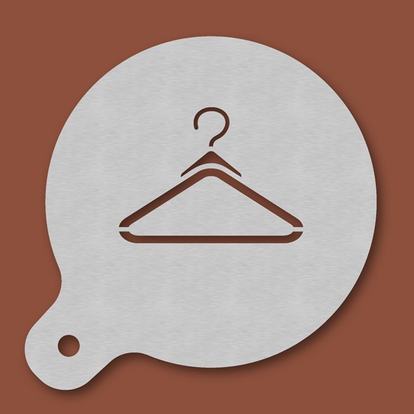 Cappuccino-Schablone Kleiderbügel, Außendurchmesser 120 mm, Motivdurchmesser ca. 70 mm, aus Edelstahl mit Handgriff und integriertem Aufhänger, spülmaschinengeeignet, Lieferung in Verkaufsverpackung mit Kartoneinlage und Bedienungsanleitung