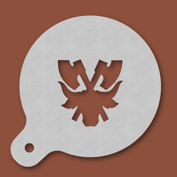 Cappuccino-Schablone Metzger - Fleischer - Schlachter, Außendurchmesser 120 mm, Motivdurchmesser ca. 70 mm, aus Edelstahl mit Handgriff und integriertem Aufhänger, spülmaschinengeeignet, Lieferung in Verkaufsverpackung mit Kartoneinlage und Bedienungsanleitung