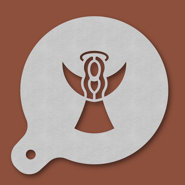 Cappuccino-Schablone Rauschgoldengel, Außendurchmesser 120 mm, Motivdurchmesser ca. 70 mm, aus Edelstahl mit Handgriff und integriertem Aufhänger, spülmaschinengeeignet, Lieferung in Verkaufsverpackung mit Kartoneinlage und Bedienungsanleitung