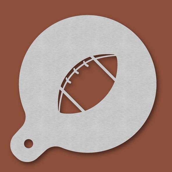 Cappuccino-Schablone Rugby, Außendurchmesser 120 mm, Motivdurchmesser ca. 70 mm, aus Edelstahl mit Handgriff und integriertem Aufhänger, spülmaschinengeeignet, Lieferung in Verkaufsverpackung mit Kartoneinlage und Bedienungsanleitung