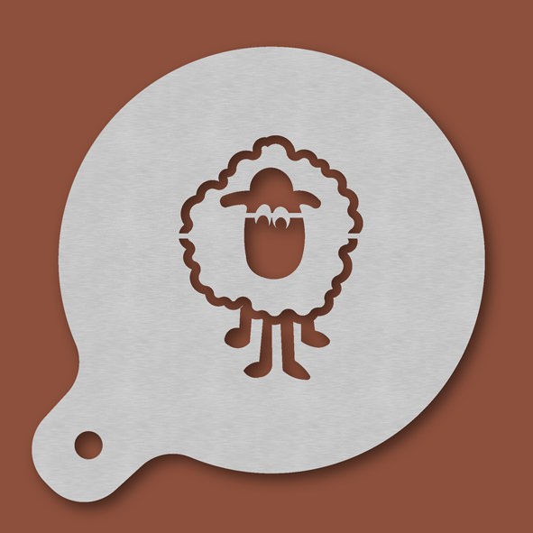 Cappuccino-Schablone Schaf, Außendurchmesser 120 mm, Motivdurchmesser ca. 70 mm, aus Edelstahl mit Handgriff und integriertem Aufhänger, spülmaschinengeeignet, Lieferung in Verkaufsverpackung mit Kartoneinlage und Bedienungsanleitung