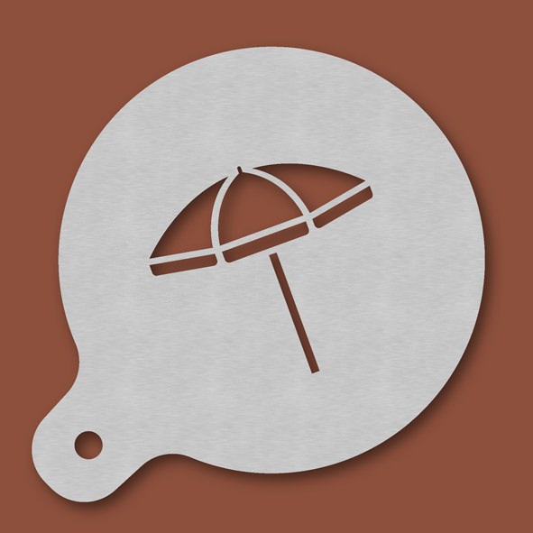 Cappuccino-Schablone Sonnenschirm, Außendurchmesser 120 mm, Motivdurchmesser ca. 70 mm, aus Edelstahl mit Handgriff und integriertem Aufhänger, spülmaschinengeeignet, Lieferung in Verkaufsverpackung mit Kartoneinlage und Bedienungsanleitung