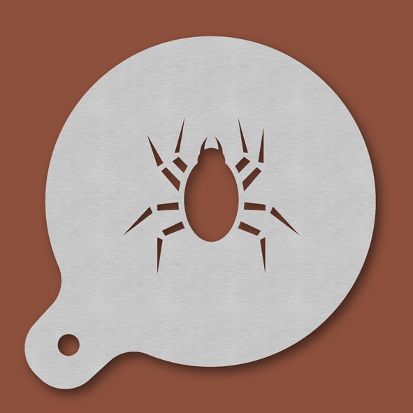 Cappuccino-Schablone Spinne, Außendurchmesser 120 mm, Motivdurchmesser ca. 70 mm, aus Edelstahl mit Handgriff und integriertem Aufhänger, spülmaschinengeeignet, Lieferung in Verkaufsverpackung mit Kartoneinlage und Bedienungsanleitung