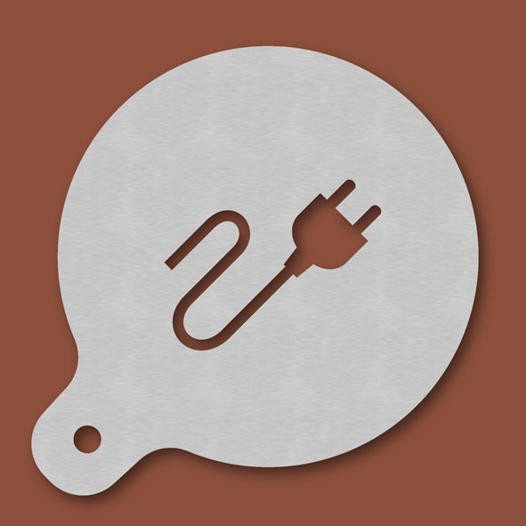 Cappuccino-Schablone Stromkabel, Außendurchmesser 120 mm, Motivdurchmesser ca. 70 mm, aus Edelstahl mit Handgriff und integriertem Aufhänger, spülmaschinengeeignet, Lieferung in Verkaufsverpackung mit Kartoneinlage und Bedienungsanleitung