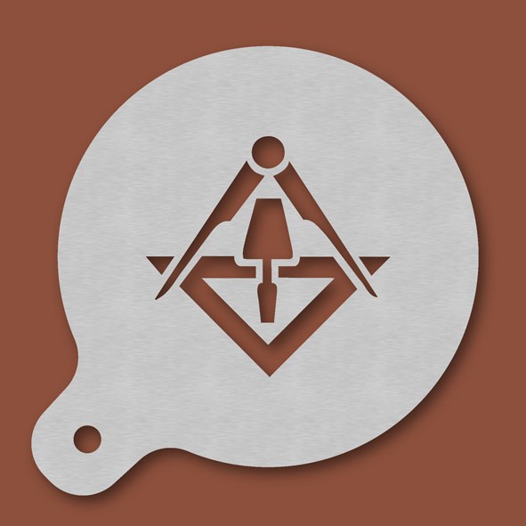 Cappuccino-Schablone Stuckateur, Außendurchmesser 120 mm, Motivdurchmesser ca. 70 mm, aus Edelstahl mit Handgriff und integriertem Aufhänger, spülmaschinengeeignet, Lieferung in Verkaufsverpackung mit Kartoneinlage und Bedienungsanleitung