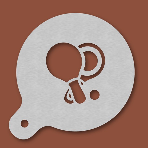 Cappuccino-Schablone Tischtennis, Außendurchmesser 120 mm, Motivdurchmesser ca. 70 mm, aus Edelstahl mit Handgriff und integriertem Aufhänger, spülmaschinengeeignet, Lieferung in Verkaufsverpackung mit Kartoneinlage und Bedienungsanleitung