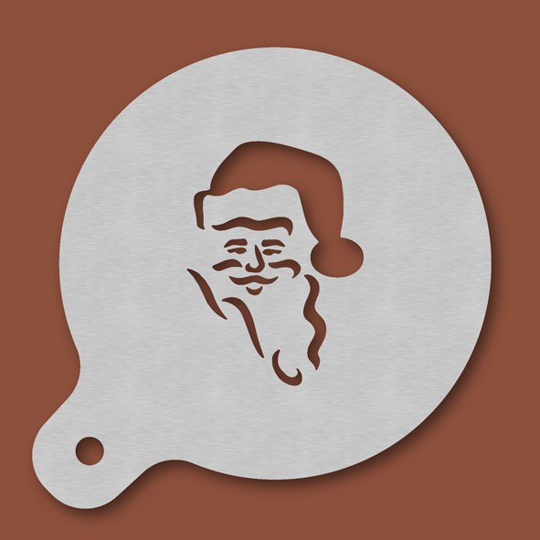 Cappuccino-Schablone Weihnachtsmann, Außendurchmesser 120 mm, Motivdurchmesser ca. 70 mm, aus Edelstahl mit Handgriff und integriertem Aufhänger, spülmaschinengeeignet, Lieferung in Verkaufsverpackung mit Kartoneinlage und Bedienungsanleitung