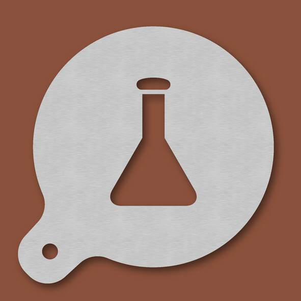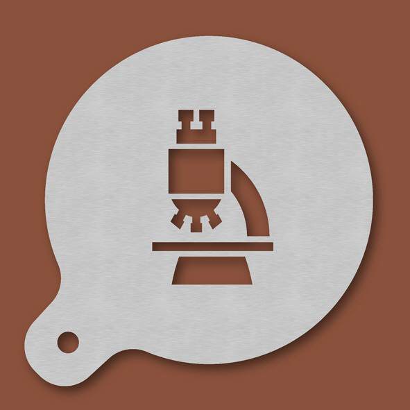 Cappuccino-Schablone Mikroskop, Außendurchmesser 120 mm, Motivdurchmesser ca. 70 mm, aus Edelstahl mit Handgriff und integriertem Aufhänger, spülmaschinengeeignet, Lieferung in Verkaufsverpackung mit ...