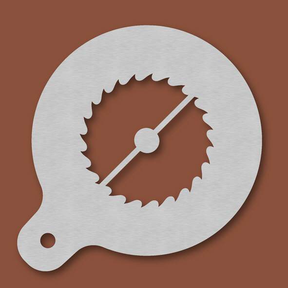 Cappuccino-Schablone Sägeblatt, Außendurchmesser 120 mm, Motivdurchmesser ca. 70 mm, aus Edelstahl mit Handgriff und integriertem Aufhänger, spülmaschinengeeignet, Lieferung in Verkaufsverpackung mit ...