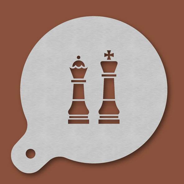 Cappuccino-Schablone Schach, Außendurchmesser 120 mm, Motivdurchmesser ca. 70 mm, aus Edelstahl mit Handgriff und integriertem Aufhänger, spülmaschinengeeignet, Lieferung in Verkaufsverpackung mit Kar ...