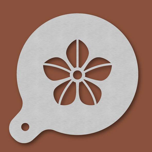 Cappuccino-Schablone Blüte, Außendurchmesser 120 mm, Motivdurchmesser ca. 70 mm, aus Edelstahl mit Handgriff und integriertem Aufhänger, spülmaschinengeeignet, Lieferung in Verkaufsverpackung mit Kart ...