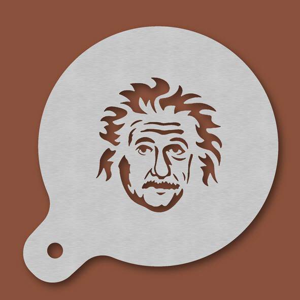 Cappuccino-Schablone Albert Einstein, Außendurchmesser 120 mm, Motivdurchmesser ca. 70 mm, aus Edelstahl mit Handgriff und integriertem Aufhänger, spülmaschinengeeignet, Lieferung in Verkaufsverpackun ...