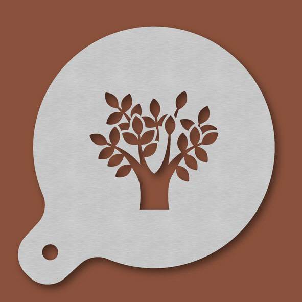 Cappuccino-Schablone Baum, Außendurchmesser 120 mm, Motivdurchmesser ca. 70 mm, aus Edelstahl mit Handgriff und integriertem Aufhänger, spülmaschinengeeignet, Lieferung in Verkaufsverpackung mit Karto ...