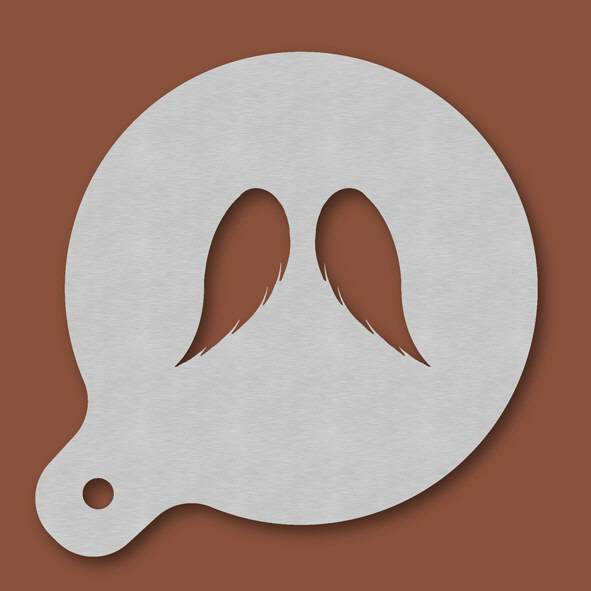 Cappuccino-Schablone Engelsflügel, Außendurchmesser 120 mm, Motivdurchmesser ca. 70 mm, aus Edelstahl mit Handgriff und integriertem Aufhänger, spülmaschinengeeignet, Lieferung in Verkaufsverpackung m ...