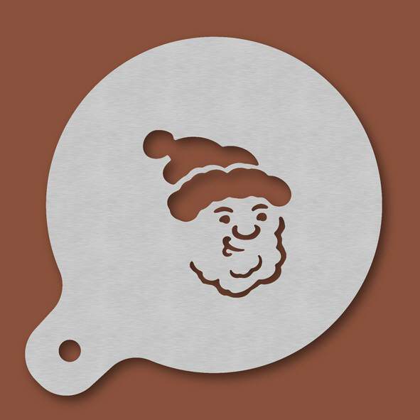 Cappuccino-Schablone Weihnachtsmann - Gesicht, Außendurchmesser 120 mm, Motivdurchmesser ca. 70 mm, aus Edelstahl mit Handgriff und integriertem Aufhänger, spülmaschinengeeignet, Lieferung in Verkaufs ...