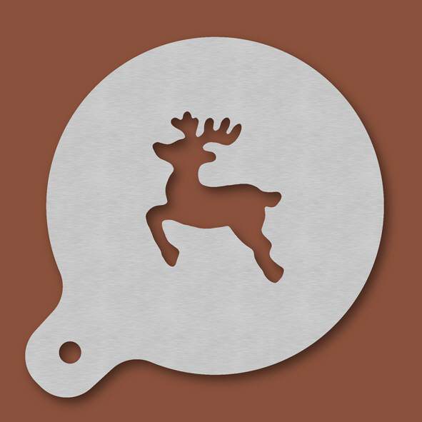 Cappuccino-Schablone Reh, Außendurchmesser 120 mm, Motivdurchmesser ca. 70 mm, aus Edelstahl mit Handgriff und integriertem Aufhänger, spülmaschinengeeignet, Lieferung in Verkaufsverpackung mit Karton ...