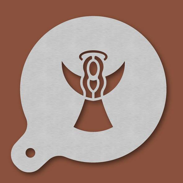 Cappuccino-Schablone Engel fliegend, Außendurchmesser 120 mm, Motivdurchmesser ca. 70 mm, aus Edelstahl mit Handgriff und integriertem Aufhänger, spülmaschinengeeignet, Lieferung in Verkaufsverpackung ...