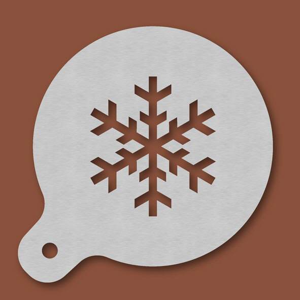 Cappuccino-Schablone Schneeflocke, Außendurchmesser 120 mm, Motivdurchmesser ca. 70 mm, aus Edelstahl mit Handgriff und integriertem Aufhänger, spülmaschinengeeignet, Lieferung in Verkaufsverpackung m ...