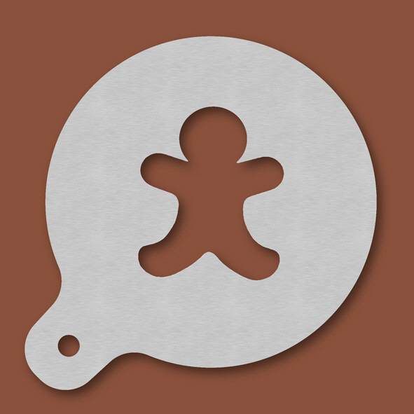 Cappuccino-Schablone Lebkuchenmann, Außendurchmesser 120 mm, Motivdurchmesser ca. 70 mm, aus Edelstahl mit Handgriff und integriertem Aufhänger, spülmaschinengeeignet, Lieferung in Verkaufsverpackung ...