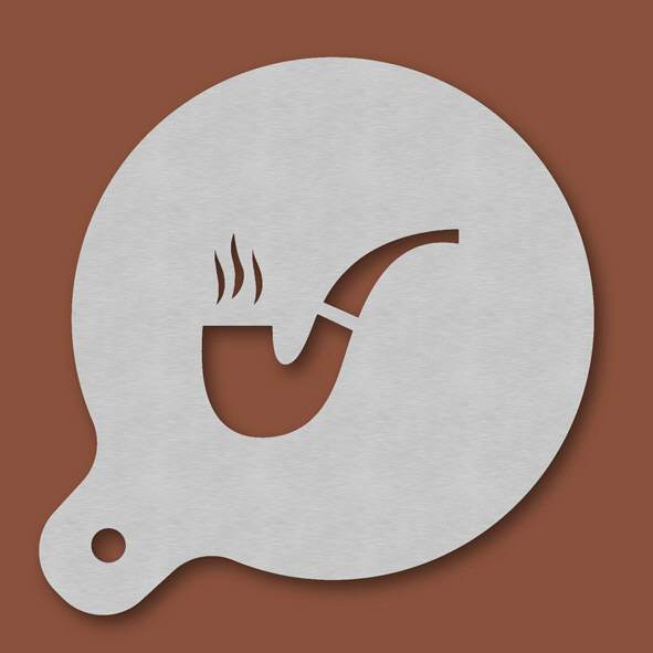 Cappuccino-Schablone Pfeife, Außendurchmesser 120 mm, Motivdurchmesser ca. 70 mm, aus Edelstahl mit Handgriff und integriertem Aufhänger, spülmaschinengeeignet, Lieferung in Verkaufsverpackung mit Kar ...
