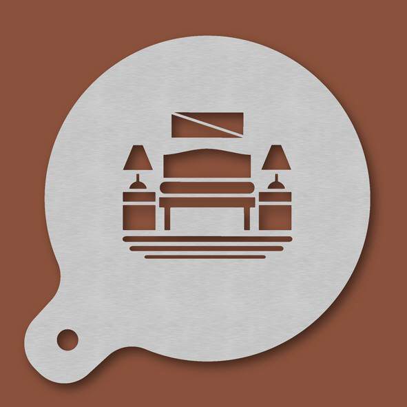 Cappuccino-Schablone Raumausstatter, Außendurchmesser 120 mm, Motivdurchmesser ca. 70 mm, aus Edelstahl mit Handgriff und integriertem Aufhänger, spülmaschinengeeignet, Lieferung in Verkaufsverpackung ...