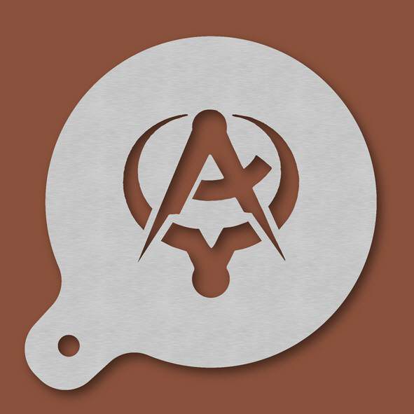 Cappuccino-Schablone Spediteur, Außendurchmesser 120 mm, Motivdurchmesser ca. 70 mm, aus Edelstahl mit Handgriff und integriertem Aufhänger, spülmaschinengeeignet, Lieferung in Verkaufsverpackung mit ...